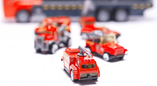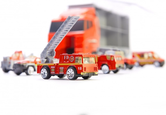 Das Spielzeug enthält Metallautos, die echte Feuerwehrautos mit detaillierten Elementen nachbilden.
