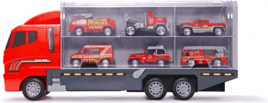 Mit dem LKW und seinen sechs robusten Metalautos können Kinder viel Spaß beim Spielen von Feuerwehrleuten erleben. Das Set enthält verschiedene Autotypen, die so gestaltet sind, dass sie echten Fahrzeugen entsprechen. Jedes Auto hat bewegliche Teile, die stundenlangen Spielspaß gewährleisten.