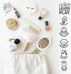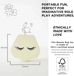 Werde der Star deiner eigenen Show mit dieser stylischen Kosmetiktasche für Kinder! Enthält alles, was man für das Visagisten-Spiel braucht – von Creme bis Föhn. Aus natürlicher Baumwolle und hochwertigem FSC®-zertifiziertem Holz gefertigt, von Hand mit umweltfreundlichen Farben nachbemalt. Fördert Fantasie, Feinmotorik und Rollenspiel.