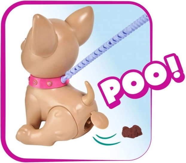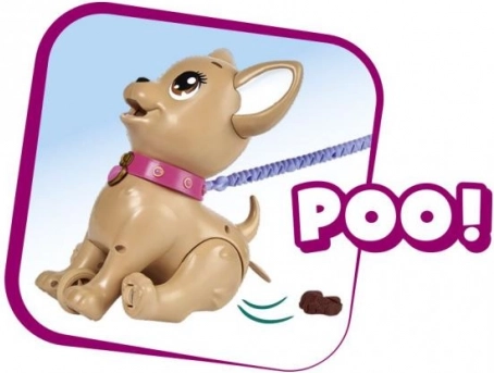 Der interaktive Chihuahua Poo Poo von CHI CHI LOVE bietet Kindern ein realistisches und zugleich sicheres Rollenspiel rund um die Haustierpflege. Forme ein Leckerli aus Knetmasse, füttere den Hund und geh spazieren – mit einem sanften Druck auf die Leine beugt der Hund die Hinterbeinchen und macht ein Häufchen, das sich mit den beiliegenden Beuteln leicht aufsammeln lässt.