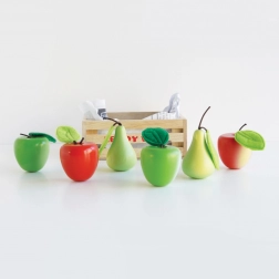 Die Holzkiste mit Äpfeln und Birnen aus der HONEYBAKE-Kollektion bringt Kindern realistischen Spielspaß rund um Kaufladen, Wochenmarkt oder Spielküche. Jedes Obststück hat einen Filzstiel und ein besticktes Blatt für einen authentischen Look. Die Kiste verfügt über praktische Griffe zum einfachen Tragen.