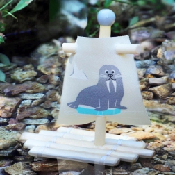 Das Textilsegel und die stabile Holzkonstruktion ermöglichen dem Floß, sanft über die Wasseroberfläche zu gleiten – ideal für Windspiele in der Wanne und im Freien.