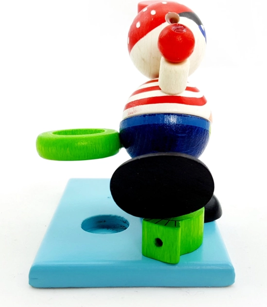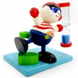 Motivieren Sie Kinder spielerisch zu regelmäßigem Zähneputzen. Der hölzerne Pirat mit Sanduhr und blauem Sand misst zuverlässig die empfohlenen 2 Minuten, während der integrierte Zahnbürstenhalter für Ordnung im Bad sorgt.