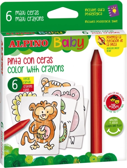 Das Wachsmalstift-Set von Alpino enthält kräftige Farben, die die kindliche Kreativität anregen und gleichzeitig motorische Fähigkeiten entwickeln. Sechs Stifte und sechs Karten mit Tierbildern bieten nicht nur Malen, sondern auch lustiges Ausmalen.