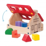 Dieses Holz-Steckspiel in Hausform ist mehr als nur ein Spielzeug. Kinder genießen nicht nur Spaß, sondern auch Lernen. Das Häuschen mit aufklappbaren Dachteilen dient als Stauraum für kleine Gegenstände und ist dadurch nicht nur funktional, sondern auch praktisch. Das Steckspiel ist aus widerstandsfähigem Massivholz gefertigt, das natürliche Optik mit attraktiven Farben verbindet.