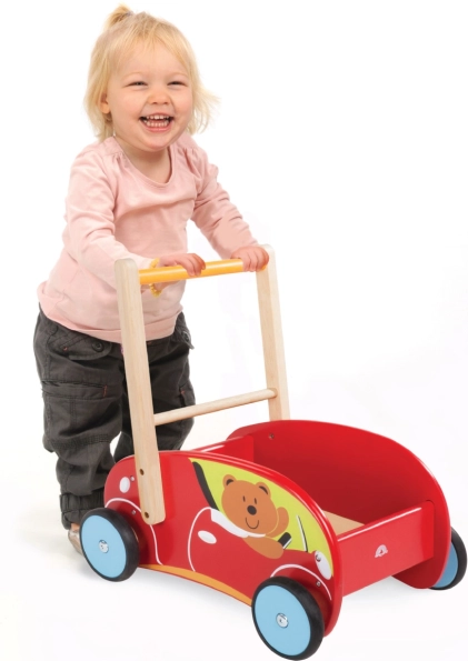 Möchten Sie, dass Ihr Kind seine Mobilität verbessert und auf spielerische Weise laufen lernt? Der Holzlauflernwagen in Autoform ist ein idealer Helfer. Er ist mit Gummirädern für leisen Betrieb und einem Geschwindigkeitsregulierungssystem ausgestattet, das Ihr Kind vor dem Sturz schützt. Kinder finden hier auch einen Aufbewahrungsbereich für ihre Lieblingsspielzeuge.