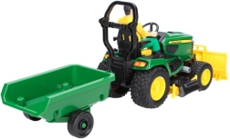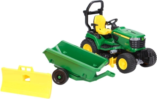 Erweitern Sie Ihre Spielwelt um den detailreichen Gartentraktor JOHN DEERE X949 der Marke BRUDER. Dank des funktionalen Frontschilds, des Mähwerks und des Kippanhängers können Kinder reale Gartenarbeiten nachspielen – vom Schieben von Laub bis zum „Mähen“ des Rasens und dem Abtransport von Material.