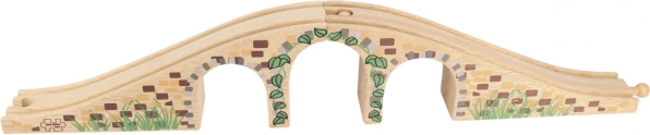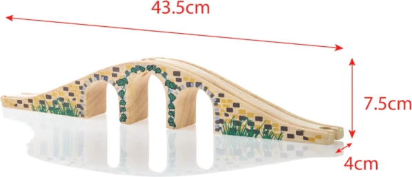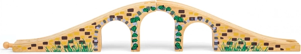 Diese stilvolle dreibogige Brücke ist die perfekte Ergänzung für jede Holzeisenbahn. Dank realistischer Details in Ziegelsteinoptik und der glatten Oberfläche verleiht sie Ihrer Strecke Höhenvielfalt und visuelle Attraktivität. Züge können über und unter der Brücke fahren, wodurch abwechslungsreiche Spielszenarien entstehen.