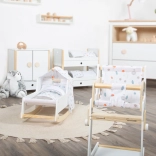 Diese Holzpuppenwiege SMALL FOOT aus der Little-Button-Serie ist in klarem skandinavischem Design gestaltet. Dank hochwertiger Materialien, abgerundeter Kanten und durchdachter Konstruktion ist sie sicher, stabil und langlebig. Schaukelleisten und Baldachin lassen sich leicht abnehmen, sodass Sie die Wiege dem aktuellen Spiel anpassen können.