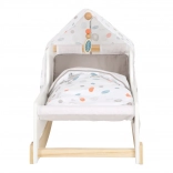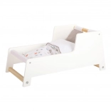 Im Lieferumfang enthalten sind beidseitige, neutral gehaltene Bettwäsche und eine große Decke, unter der Puppen oder Stofftiere bis 46 cm bequem Platz finden. Sanfte Farben und minimalistische Linien machen sie zu einem geschmackvollen Accessoire für jedes Interieur und fördern kreatives und nachahmendes Spiel.