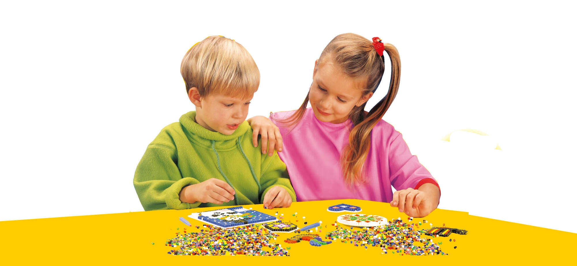 Transparente Schablonen erleichtern das Legen der Motive, während inspirierende Vorlagen Kindern helfen, schnell zu starten und die Technik zu erlernen.