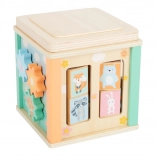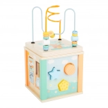 Dieser hölzerne Motorikwürfel in modernen Pastellfarben aus der Produktlinie „Pastel“ überzeugt durch einen hohen Holzanteil, niedliche Tiermotive und sorgfältige Verarbeitung. Kinder können an fünf Seiten spielen und dabei auf natürliche Weise Hand-Auge-Koordination, Geduld und räumliches Vorstellungsvermögen trainieren.
