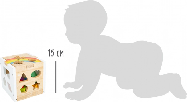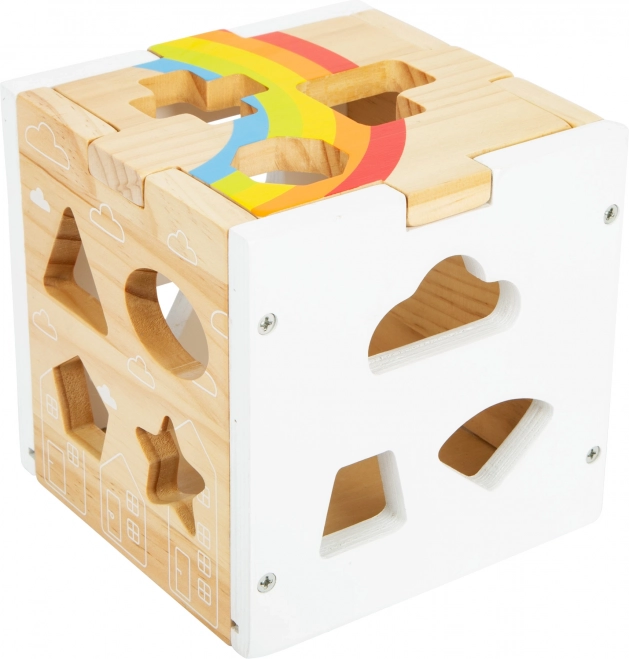 Dieser moderne Holz-Steckwürfel SMALL FOOT besticht durch die klare Optik von naturbelassenem Holz in Kombination mit weißen Paneelen und farbenfrohen Elementen. Kinder stecken Formen wie Kreis, Stern, Dreieck, Kreuz, Wölkchen oder Häuschen in die passenden Öffnungen und trainieren spielerisch Feinmotorik und logisches Denken.