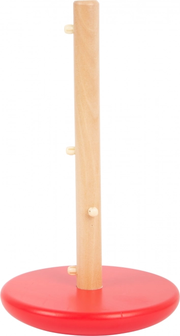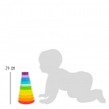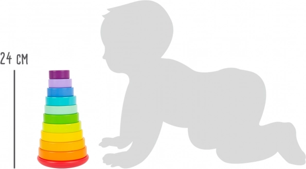 Mit zehn bunt gefärbten Scheiben und einer Stange mit abgerundetem Sockel fördert dieser Turm die Entwicklung motorischer Fähigkeiten und die Unterscheidung von Farben.