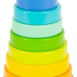 Außerdem verfügt der Turm über einen abgerundeten Sockel, sodass er beim Stapeln schaukelt und zusätzlichen Spielspaß bietet. Das farbenfrohe Design unterstützt das Erkennen von Farben und Formen sowie verschiedener Größen.