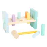 Entdecken Sie den Zauber eines traditionellen Spielzeugs im modernen Gewand. Unsere Klopfbank in sanften Pastellfarben ist ideal für Kinder, die ihre Kraft ausprobieren und gleichzeitig ihre Motorik verbessern möchten. Tierillustrationen verleihen diesem Spielzeug einen einzigartigen Look. Nach dem spaßigen Hineinklopfen aller Stifte können Sie das Spielzeug einfach umdrehen und von vorn beginnen.