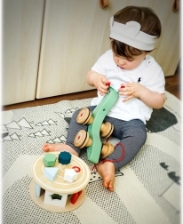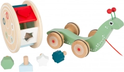 Wir präsentieren Ihnen eine niedliche Holzschnecke am Seil, die nicht nur unterhält, sondern auch zur Entwicklung Ihres Kindes beiträgt. Dank ihrer Leichtigkeit und leicht drehbaren Räder ist sie ideal für Kinder, die gerade laufen lernen, und unterstützt deren Koordination und Gleichgewicht. Die Schnecke dient zudem als Sortierer mit fünf verschiedenen Formen, was kognitive Fähigkeiten und Feinmotorik anregt.