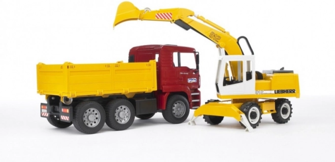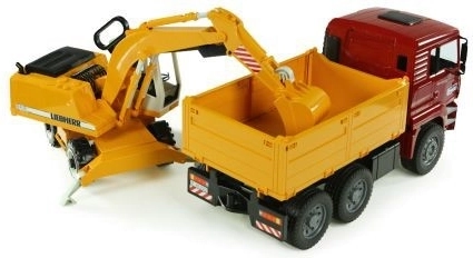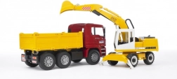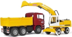 Dieses fantastische Bauset von Bruder enthält einen MAN TGA-Lkw mit weichen Reifen und einer praktischen Kippmulde. Dazu gehört ein funktionaler Liebherr-Bagger, der sich mit Stabilisierungsstützen, profilierten Reifen und einem Baggerarm mit drehbarer 360°-Kabine rühmt. Das Produkt ist in Deutschland aus strapazierfähigen Materialien hochwertig gefertigt.