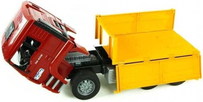 Der MAN-Lkw ist mit einer Kippmulde ausgestattet, die eine einfache Beladung und Entladung von Materialien ermöglicht.
