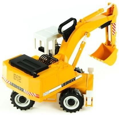 Der Liebherr-Bagger hat eine Kabine, die sich um 360° drehen lässt, und einen voll funktionsfähigen Baggerarm, der ein realistisches Spielerlebnis bietet.