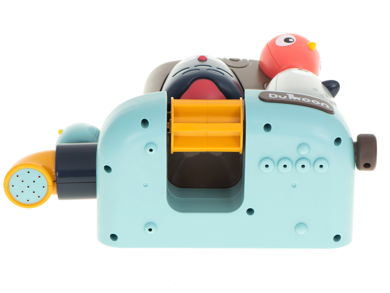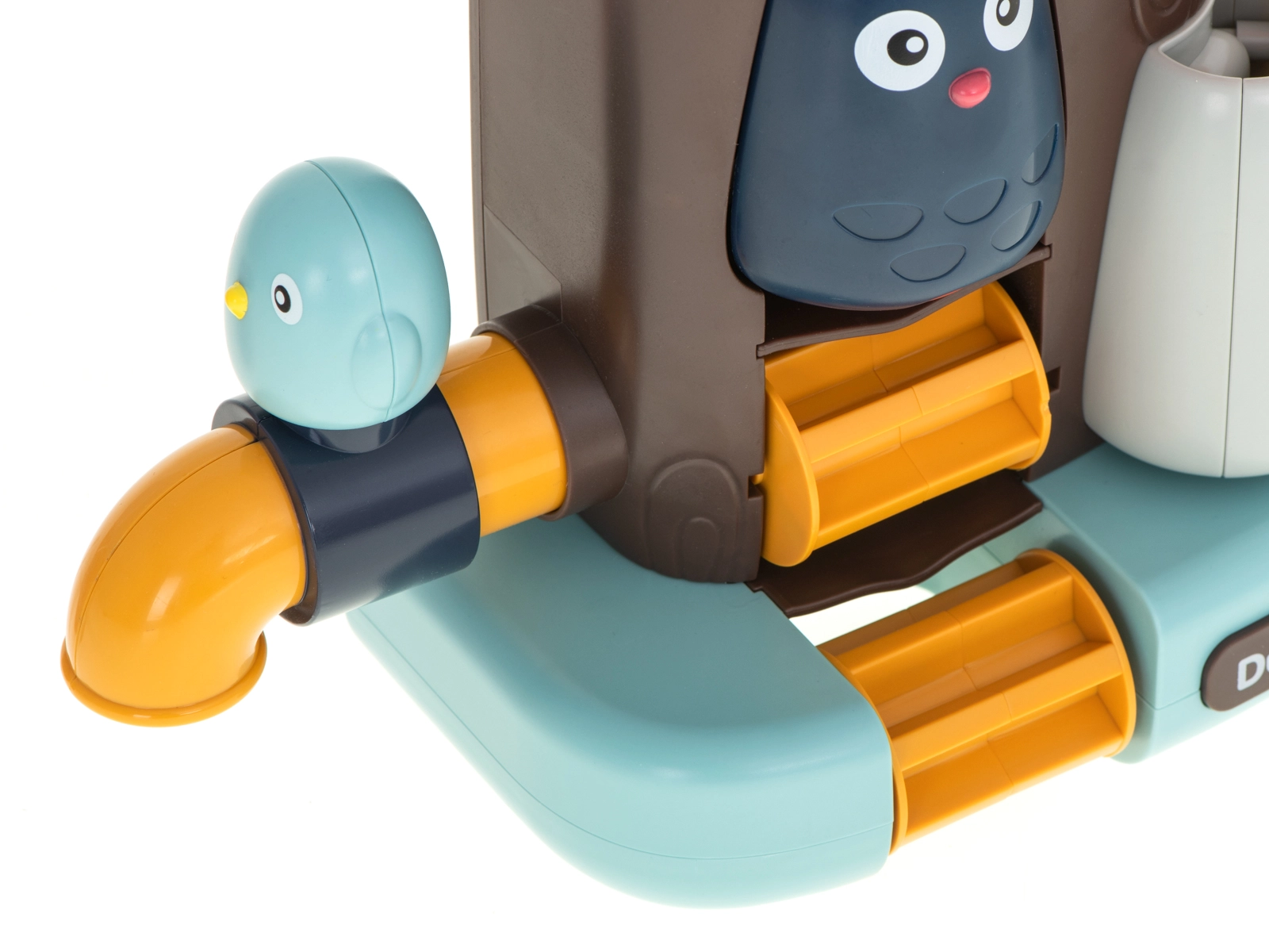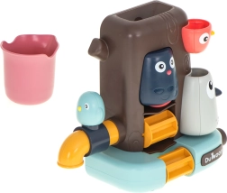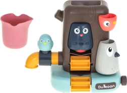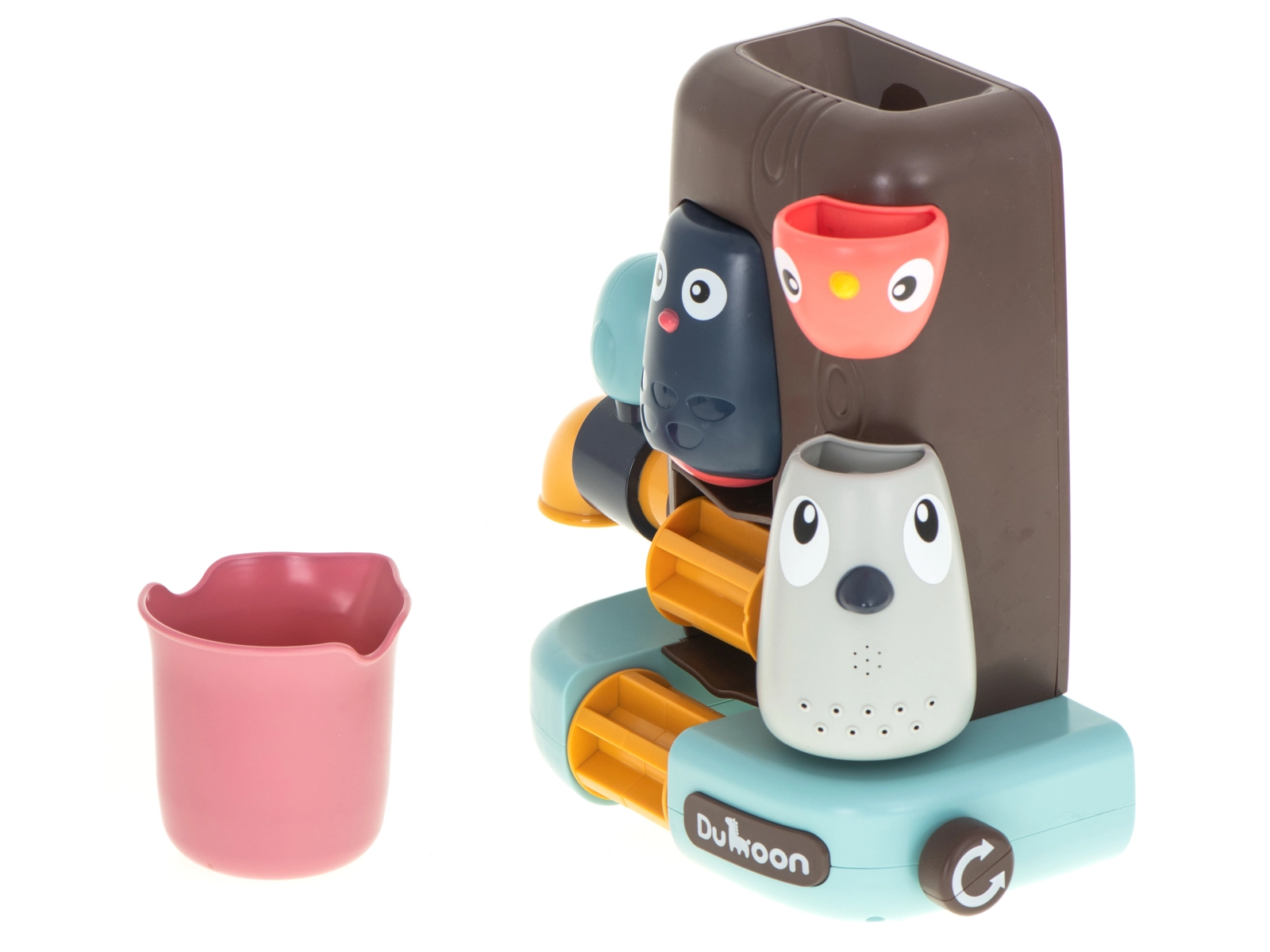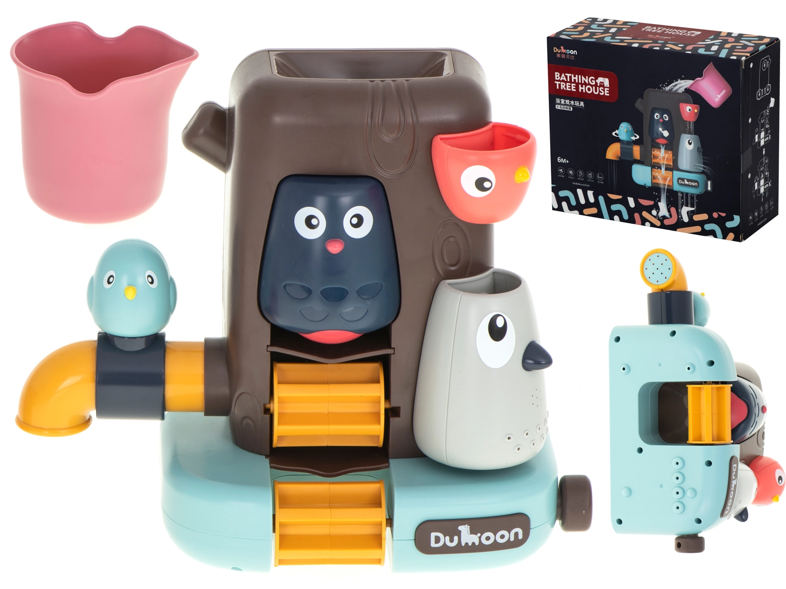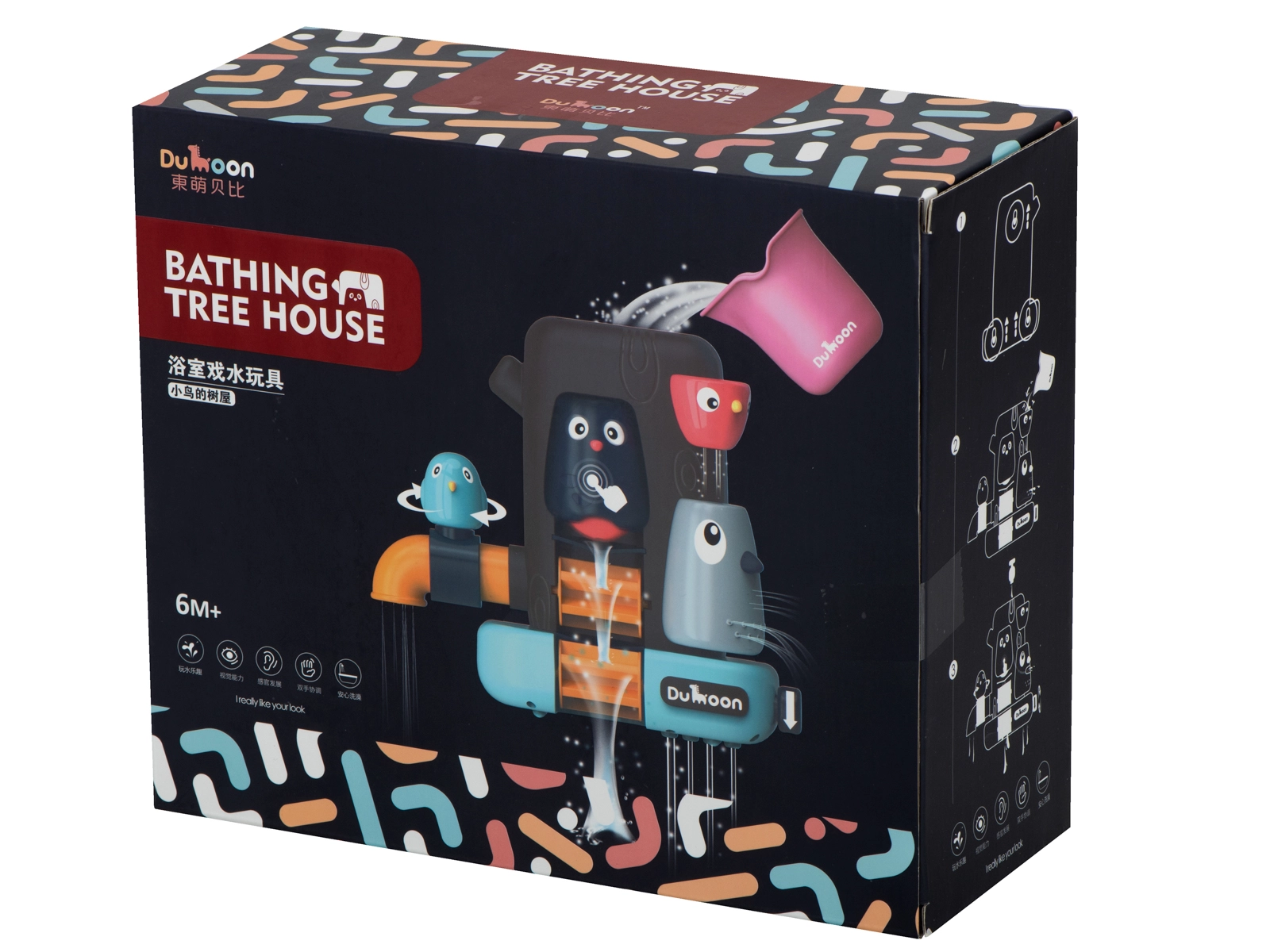 Das fröhliche Baumhaus mit niedlichen Vögelchen ist die perfekte Motivation für Kinder, die Baden nicht besonders mögen. Einfach mit den Saugnäpfen an Wanne oder Fliesen befestigen, mit dem beigefügten Becher Wasser einfüllen und der Spaß kann beginnen. Der blaue Vogel steuert den Wasserhahn – durch Drehen wird das Wasser gestoppt oder gestartet, die Eule überwacht das Wasserrad und der graue Vogel erzeugt dank feiner Öffnungen einen Dusch-Effekt.