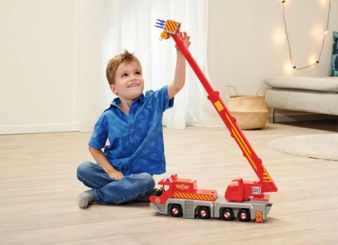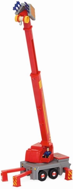 Der Kran dreht sich sanft rundum, und sein Arm fährt bis auf 75 cm aus. Mit dabei sind eine Wasserkanone mit Kunststoffpfeilen für sicheres „Löschen“ sowie eine mechanische Winde für Rettungseinsätze.
