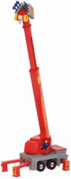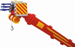 Der Kran dreht sich sanft rundum, und sein Arm fährt bis auf 75 cm aus. Mit dabei sind eine Wasserkanone mit Kunststoffpfeilen für sicheres „Löschen“ sowie eine mechanische Winde für Rettungseinsätze.