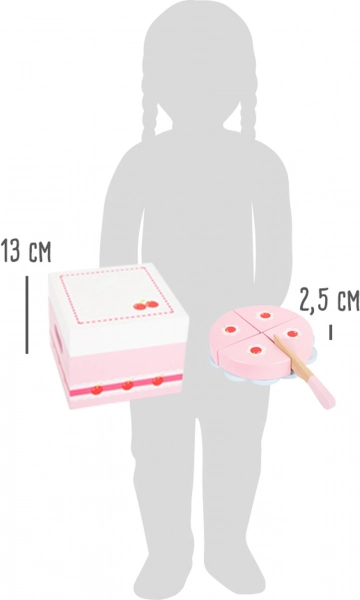 Kinder können die Torte dank Klettverschluss in Stücke teilen und wieder zusammensetzen – ideal zum Üben der Feinmotorik und für realistisches Konditor-Spiel.