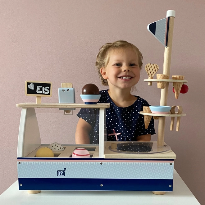 Das Set enthält acht verschiedene Eissorten, darunter Vanille, Schokolade, Stracciatella und Erdbeere. Interaktive Elemente wie Ständer für Waffelhörnchen, eine Kunststoffvitrine und ein Gefrierfach mit transparentem Deckel intensivieren das Spielerlebnis zusätzlich.