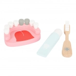 Dieser Kinder-Arztkoffer bietet viele Spiel- und Lernmöglichkeiten. Er enthält Holzwerkzeuge wie Spritze, Zahnbürste, Bohrer, Zange und ein Zahnmodell. Kinder können zu kleinen Zahnärzten werden und die Grundlagen der dentalen Hygiene spielerisch erlernen.