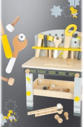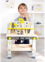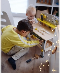 Die Werkbank ist ideal für Kinder ab 3 Jahren und bietet die Möglichkeit zur Zusammenarbeit beim Aufbau, wodurch Geschicklichkeit und Vorstellungskraft weiter gestärkt werden.