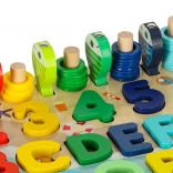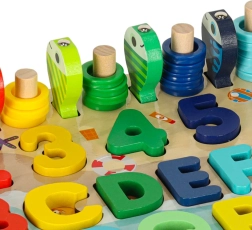 Dieses kreative didaktische Set bietet Kindern viele Möglichkeiten, spielend zu lernen. Mit dem Sortierer trainieren sie das Erkennen von Formen, Zahlen und Buchstaben, mit dem Abakus erlernen sie die Grundlagen des Zählens, und mit der magnetischen Angel erleben sie spaßiges Fischefangen, das die Hand-Auge-Koordination stärkt.