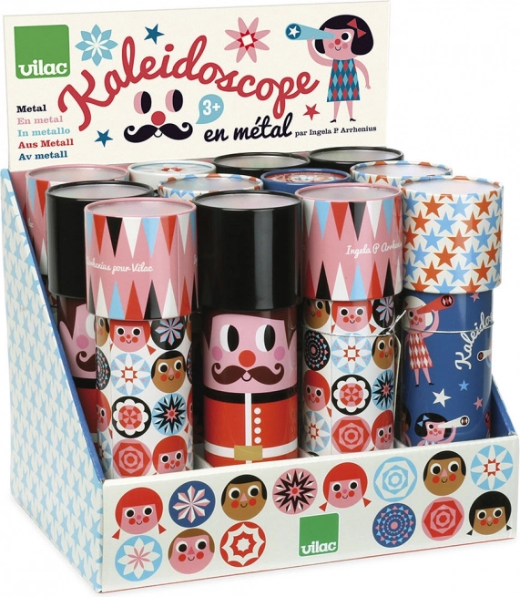 Klassisches Spielzeug im modernen Gewand: Das VILAC-Kaleidoskop mit Illustrationen der weltbekannten Künstlerin Ingela P. Arrhenius begeistert Kinder mit farbenfrohen optischen Effekten und verspieltem Design. Einfach drehen – und vor den Augen entstehen endlose Kombinationen aus Formen und Farben.