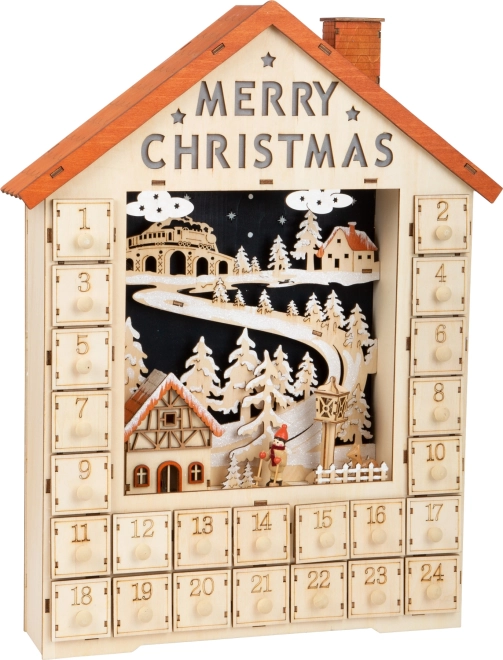 Erleben Sie die Atmosphäre der kommenden Feiertage mit unserem außergewöhnlichen Adventskalender. Jedes Fenster kann mit kleinen Geschenken oder Süßigkeiten gefüllt werden, was Kinder und Erwachsene erfreut. Der Kalender besteht aus Holz und besticht durch fein geschnittene Details, die ihn zu einem einzigartigen dekorativen Element machen.
