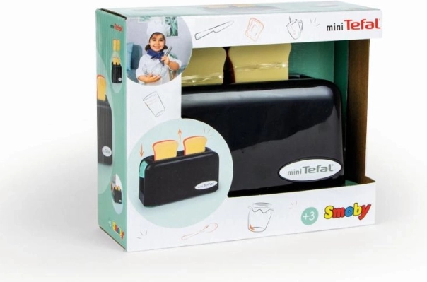 Der Mini Tefal Kindertoaster ist das ideale Spielzeug für Kinder, die die Arbeit in der Küche nachahmen möchten. Einfach Plastikschnitten in den Toaster legen und den Schalter zum mechanischen Hochfahren drücken.