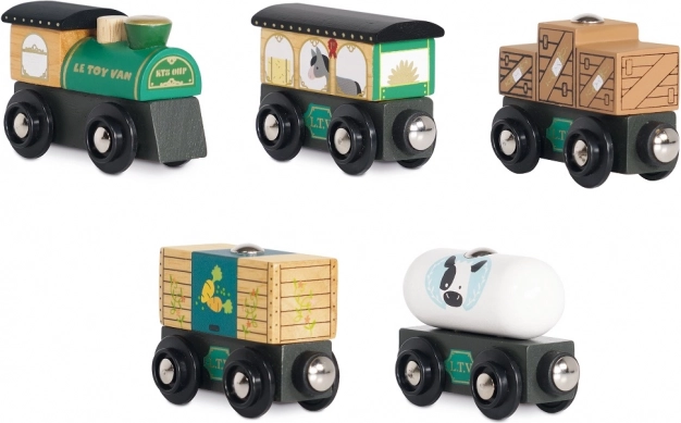 Niedlicher hölzerner Güterzug in Grün von Le Toy Van, bereit für fantasievolle Abenteuer. Hergestellt aus nachhaltigem Holz, von Hand mit ungiftigen, wasserbasierten Farben bemalt, und dank magnetischer Kupplungen lassen sich die Waggons leicht verbinden. Kompatibel mit den meisten Holzeisenbahnen, fördert Motorik, Sprache und soziale Fähigkeiten. Ideal für Kinder ab 3 Jahren.