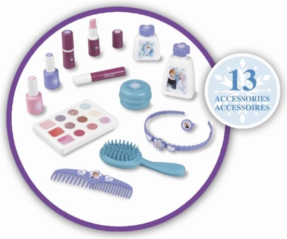 Dieses Schönheitssatz aus der Frozen-Kollektion ist ideal für Kinder, die gerne Neues ausprobieren und verschiedene stylische Looks kreieren. Dank kompakter Abmessungen und praktischem Griff kann das handliche Set überallhin mitgenommen werden. Es enthält: