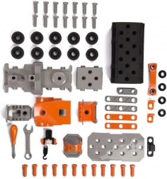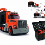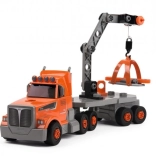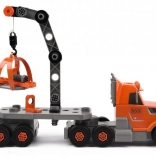 Der Kran kann anstelle des Koffers am Anhänger befestigt werden und bietet die Möglichkeit zum mechanischen Zusammenbau für kreatives Spielen.