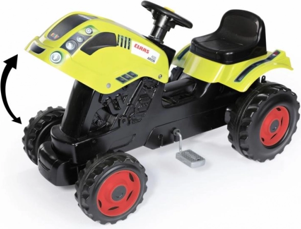 Nehmen Sie Platz am Steuer des stylischen CLAAS Trettraktors und fahren Sie in den Hof, Garten oder auf den Spielplatz. Realistische Details wie die aufklappbare Motorhaube und die funktionierende Hupe fördern Fantasie und authentisches Spielen. Dank des verstellbaren Sitzes wächst der Traktor mit dem Kind mit und bietet stets komfortables Sitzen.