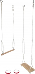 Dieses multifunktionale Set für kleine Akrobaten bringt aktive Bewegung und Freude in den Garten und ins Kinderzimmer. Die klassische Holzschaukel, die Turnstange und die Gymnastikringe mit komfortablen Kunststoffgriffen fördern Koordination, Kraft und Gleichgewicht.