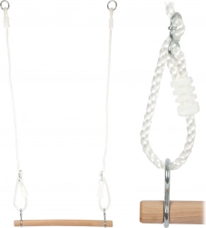 Dank der widerstandsfähigen Synthetikseile mit Seilacht stellen Sie die optimale Höhe für jedes Kind ein. Zwei Seilsätze ermöglichen es, zwei Komponenten gleichzeitig aufzuhängen und zu verwenden. Das einfache Aufhängesystem und die robuste Kombination aus Holz, Metall und hochwertigen Kunststoffen gewährleisten eine sichere und stabile Nutzung.