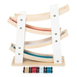Diese schöne hölzerne Rennbahn ist ideal für kleine Rennfahrer. Dank der vier Autos, die kopfüber die Rampe hinunterflitzen können, ist das Spiel dynamisch und unterhaltsam. Aus hochwertigem Naturholz in Kombination mit farbigen Akzenten gefertigt, bietet sie eine ansprechende Optik und fördert gleichzeitig die motorische Entwicklung der Kinder.