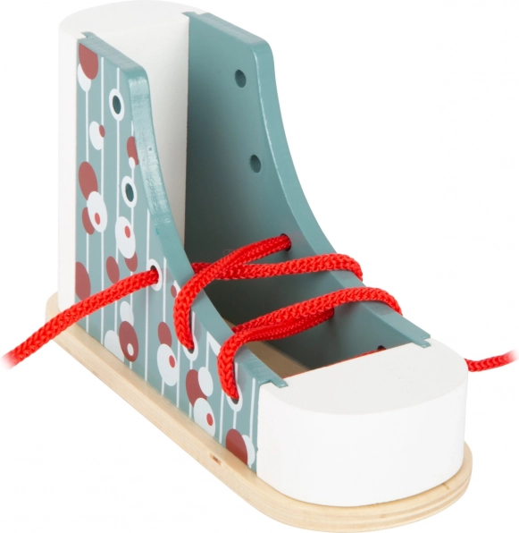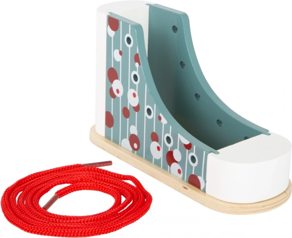 Dieser Holzschuh von Small Foot ist ein ideales Werkzeug für Kinder, die das Binden von Schnürsenkeln lernen möchten. Mit modernem Design und bunten Mustern lernen Kinder durch Spiel, ihre Koordination und Geduld zu verbessern. Dank der stabilen Konstruktion hält der Schuh dem Schnürversuch stand und ist auch für kleine Kinder im Kindergartenalter geeignet.