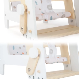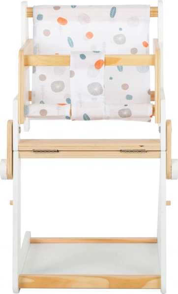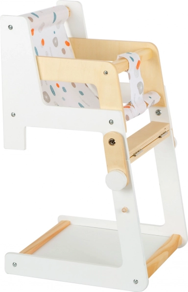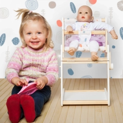 Dieser vielseitige Puppenstuhl der Marke Little Button zeichnet sich durch sein skandinavisches Design und abgerundete Kanten aus, was sowohl Sicherheit als auch ästhetische Anziehungskraft gewährleistet. Dank seiner einfachen Konstruktion passt er problemlos in jedes Interieur. Zu den Hauptmerkmalen gehören: