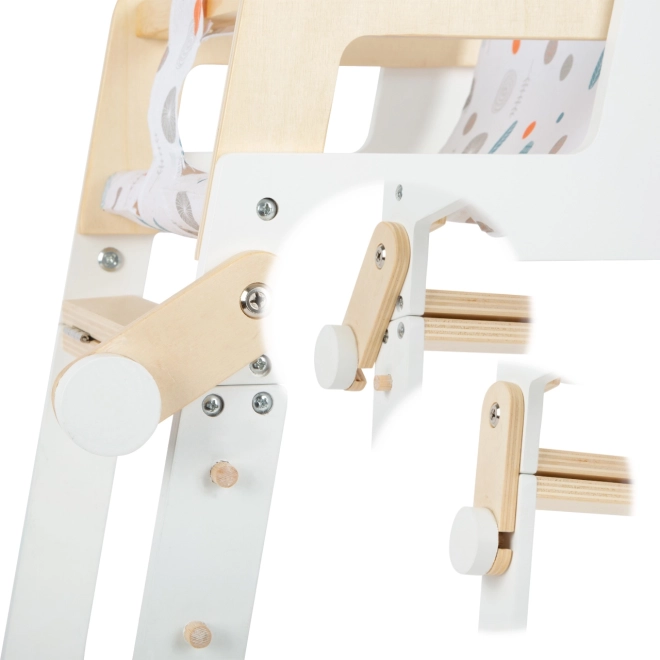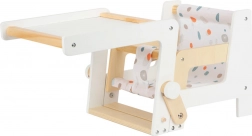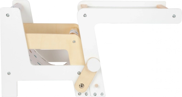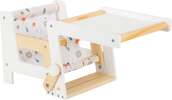 Mit einem einfachen Handgriff kann der Stuhl in einen kleinen Tisch mit Stuhl umgewandelt werden.