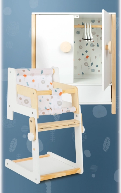 Der Stuhl ist Teil der Little Button-Reihe, die einen einheitlichen Designstil für verschiedene Puppenzubehörteile anbietet, was die Schaffung einer harmonischen Kinderecke ermöglicht.