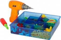 Ein großes Set aus bunten Schrauben, Plättchen und Formteilen weckt die Kreativität und fördert das selbstständige Gestalten von Mosaiken und Modellen.