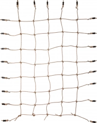 Das Kletternetz ist mit robusten Kunststoffschellen und Metallösen ausgestattet, die eine einfache und stabile Befestigung gewährleisten.