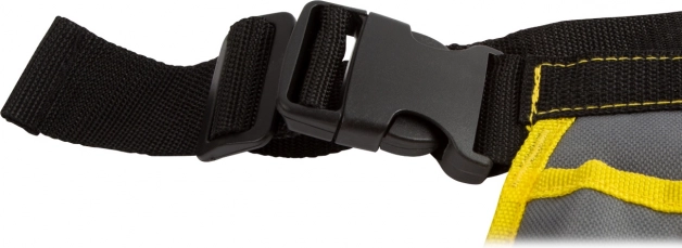 Der Gürtel hat 8 Fächer, eine Hammerschnalle und einen Karabiner zur einfachen Organisation der Werkzeuge.