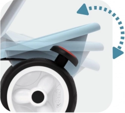 SMOBY Baby Balade Plus ist ein zuverlässiges erstes Dreirad, das Ihr Kind von den ersten Ausfahrten bis zur selbstständigen Fahrt begleitet. Eltern schätzen die höhenverstellbare Schiebestange und die Lenkungssperre für eine einfache Steuerung, ebenso wie die Feststellbremse für sicheres Anhalten. Dank des Freilauf-Mechanismus kann sich das Rad drehen, während die Pedale stillstehen – ideal, wenn ein Erwachsener schiebt.